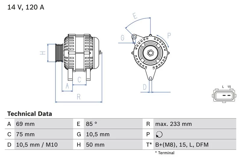 | Alternator charging current (A) | 120 |