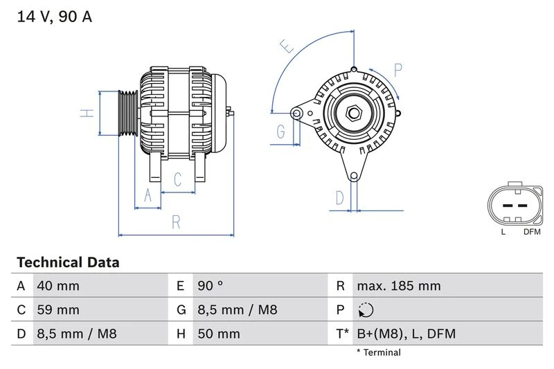 | Alternator charging current (A) | 90 |