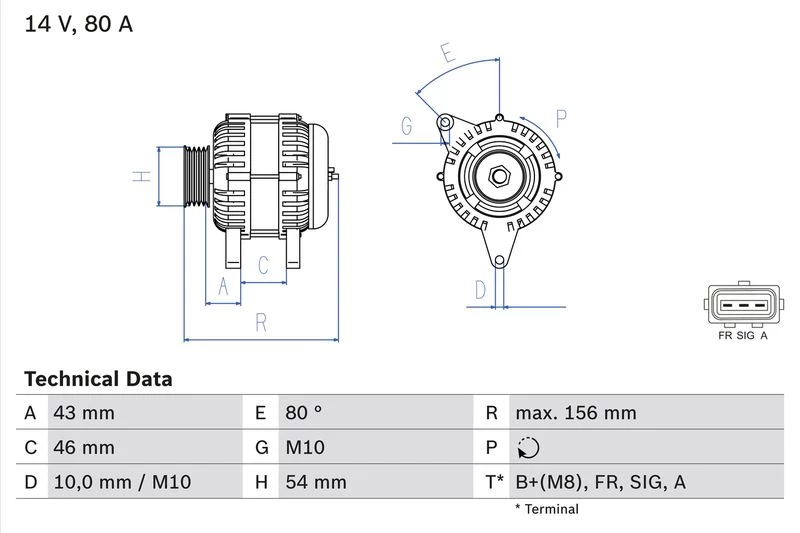 | Alternator charging current (A) | 80 |