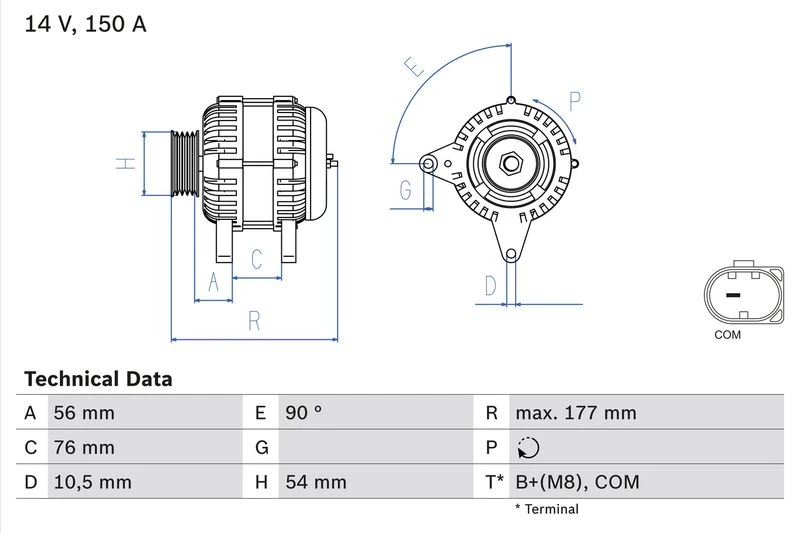 | Distance from belt pulley to alternator (mm) | 56 |