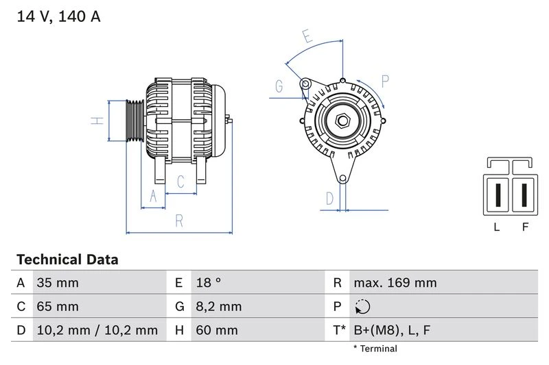 | Distance from belt pulley to alternator (mm) | 35 |