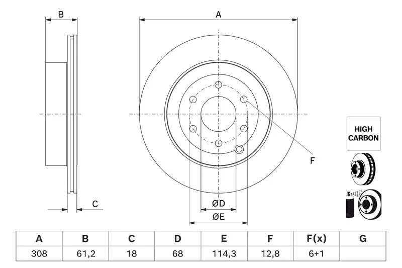 | Bolt hole circle Ø (mm) | 114.3 |