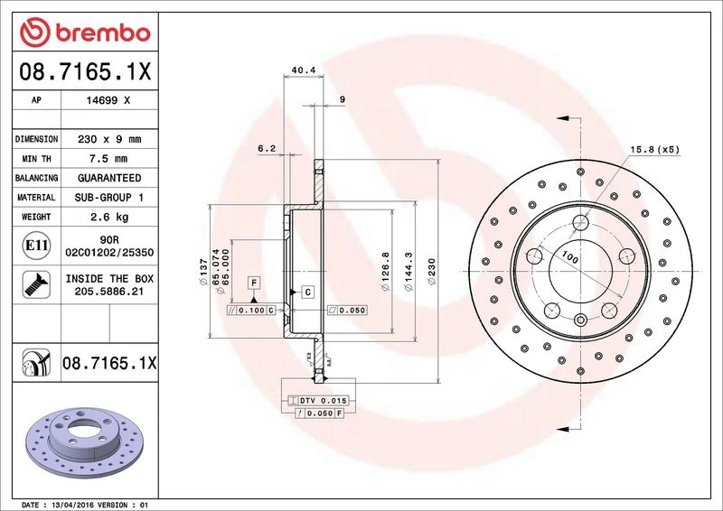 | Outer diameter (mm) | 230 |