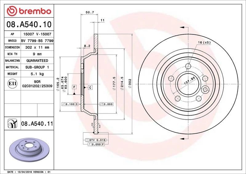 | Brake disc thickness (mm) | 11 |