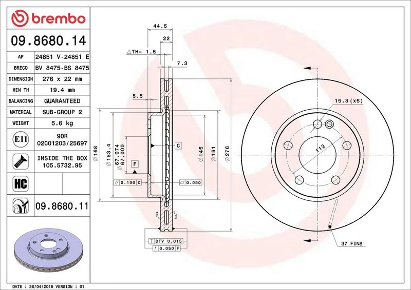 | Brake disc thickness (mm) | 22 |