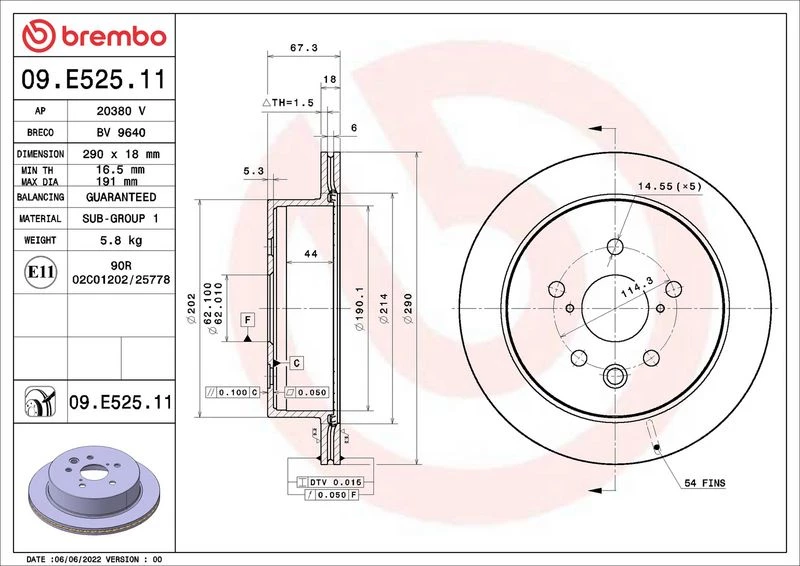 | Outer diameter (mm) | 290 |