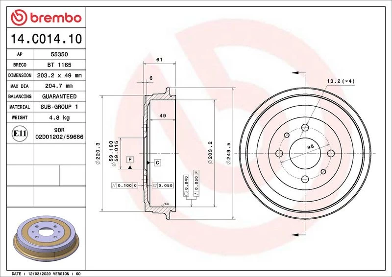 | Max. brake drum reboring dimension (mm) | 204.7 |