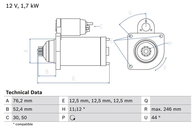 | Starter output (kW) | 1.7 |