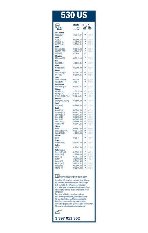 | Wiper blade type | bracket wiper blade with spoiler |